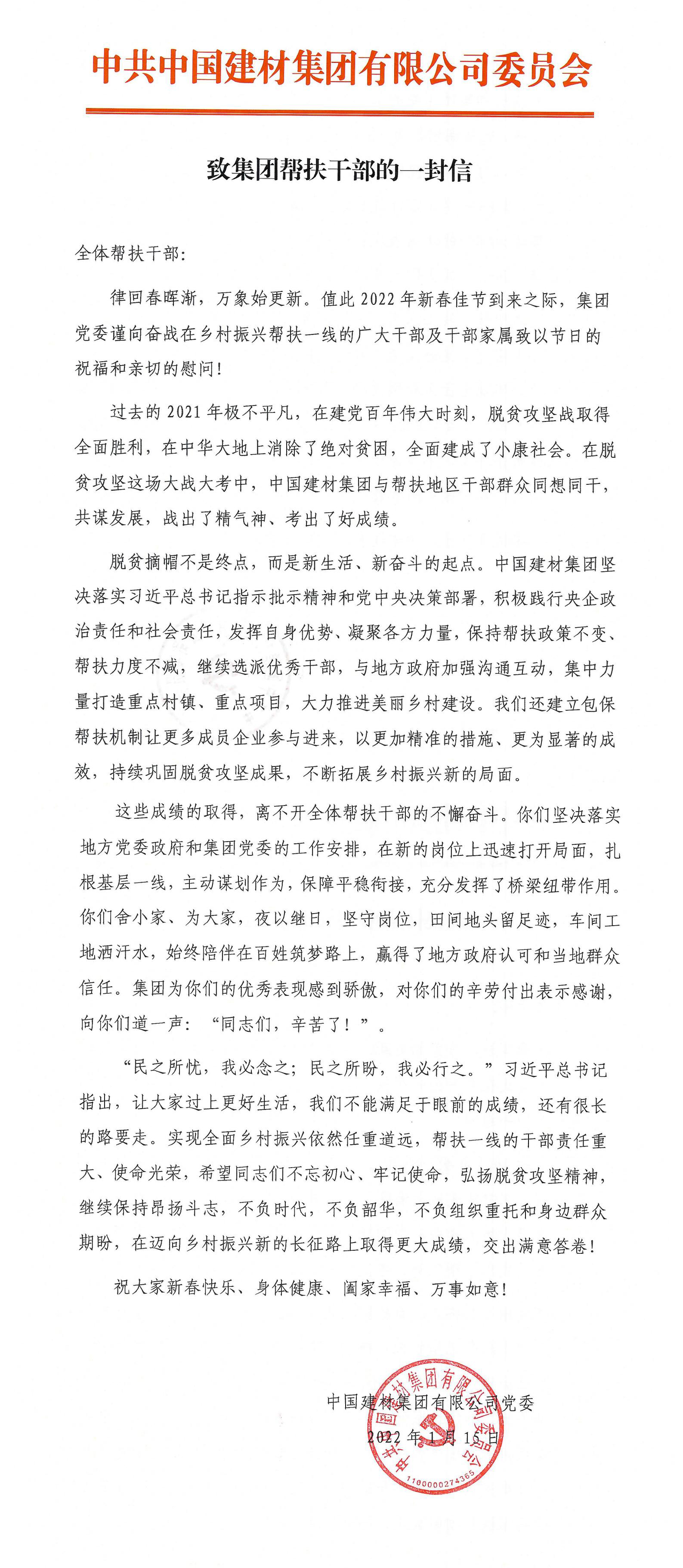 致集团帮扶干部的一封信
