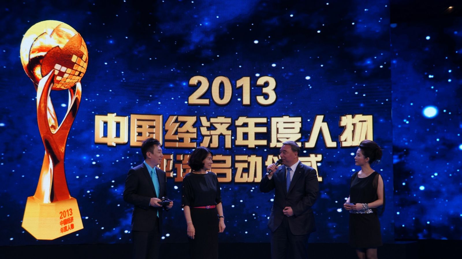启动仪式的最后,在闪耀的灯光映衬下,带有财经频道标志的光球仿佛从天而降,参与启动仪式的重要嘉宾一同上台,当嘉宾们把手放在光球之上,刹那间光芒四射,在到场的200多位嘉宾的见证下,2013年中国经济年度人物评选活动眩目开启。