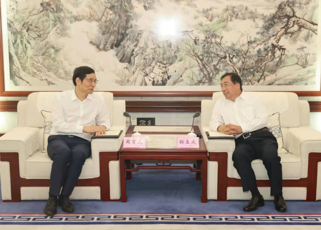 孙立成对周育先一行到访表示欢迎,介绍了山东济南经济社会发展情况。他表示,山东济南正深入实施高质量发展重大国家战略,加快建设济南新旧动能转换起步区, 长期以来与山东省及济南市保持着良好合作关系,为山东与济南市经济社会发展作出了积极贡献。希望双方进一步加强在起步区建设、高端装备智能制造、新材料等领域的合作,推动有关项目尽快落实落地,济南市将全力以赴为 在济发展创造良好环境。
