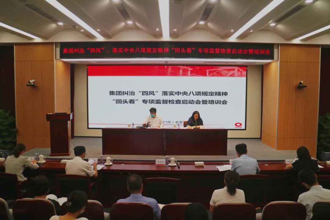 为深入贯彻落实郝鹏书记在 调研座谈会上讲话精神,进一步落实集团党风廉政建设和反腐败工作部署,7月28日, 纪委在京组织召开纠治“四风”、落实中央八项规定精神“回头看”专项监督检查启动会暨培训会。集团党委常委、纪委书记杨杰出席会议并提出工作要求,会议由集团纪委副书记崔淑红主持。