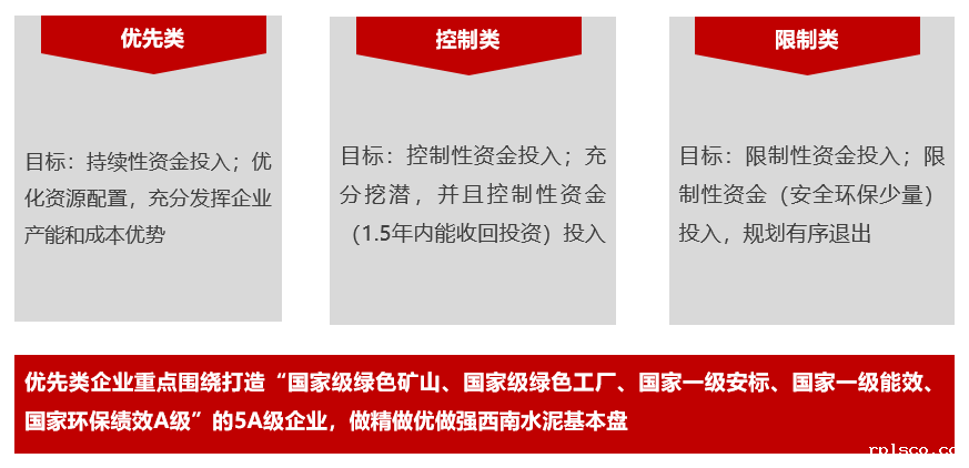 按照量力而行、有保有压的原则,西南水泥科学编制资本性支出预算,重点向节能降耗、降本增效倾斜。通过综合研判,将所属公司分为“优先类、控制类、限制类”三类,在统筹考虑经营与发展,平衡短期效益与长远利益的基础上,不断优化投资方向,精细管控资本性支出,提升区域长远发展核心竞争力。