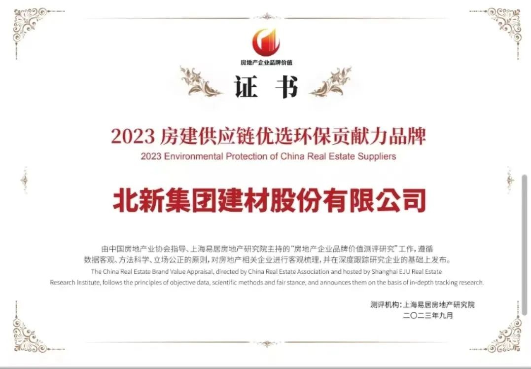北新建材荣获“2023房建供应链优选环保贡献力品牌”
