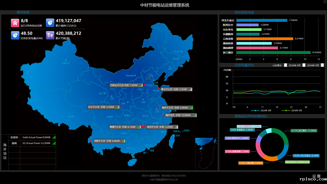 在集团数字化转型战略的引领下,中材节能已建成总部强管控型电站运维管理系统。该系统是一个具有开放性、扩展性、可迭代更新的运维平台,覆盖了公司所有BOT电站、运维电站的信息数据的采集、分析和展示,打通了公司和各BOT电站、运维项目工厂侧的数据孤岛,实现各工厂之间的数据流、业务流的融合。该系统具备协同管理,标准化运维、生产数据实时对标等功能,实现了生产数据可视化、生产管控及时化、设备运维远程化、数据分析智能化、碳减排量数据在线化。还可在电脑端、移动端、调度大屏展示,使生产运维更加便捷,生产能力更加高效、资源配置更加优化、运维成本更加低廉。