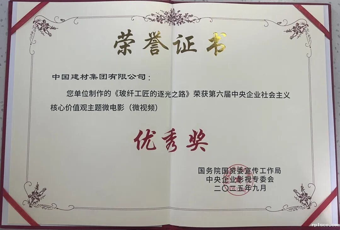 9月19日,国务院国资委宣传局主办的“第六届中央企业社会主义核心价值观主题微电影(微视频)展映发布仪式”在京举行。泰山玻纤微视频《玻纤工匠的逐光之路》成功入选100部优秀作品并获评“敬业奉献类”优秀作品。