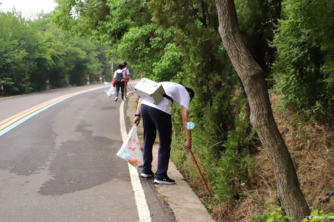 登山途中,志愿者们自行组队助力低碳环保生活,认真地捡拾路人丢弃在草丛、树坑中的烟蒂、吸管等垃圾。大家干劲十足,充分发扬不怕脏、不怕累的精神,争当绿色低碳生活的实践者。