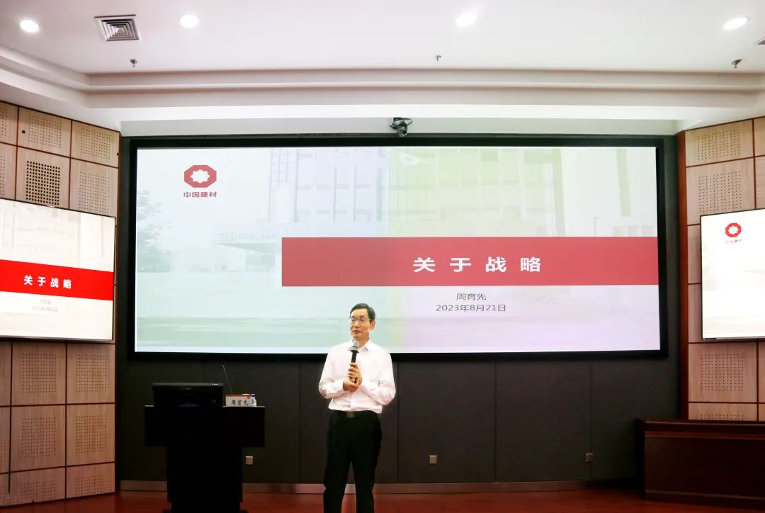 8月21日, 党委书记、董事长周育先以《关于战略》为主题,为集团第六期EMT培训班、中材国际第四期EMT培训班授课。专题授课由集团党委组织部(人力资源部)部长(总经理)、党群工作部主任苗小玲主持。