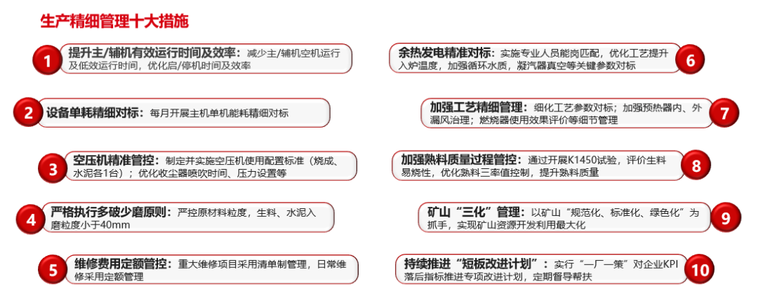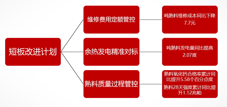全面推进维修费用定额管控、余热发电精准对标和熟料质量过程管控“短板改进计划”落地落实。