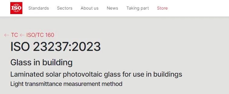 近日,从国际标准化组织(ISO)官网获悉,由 国际工程集团有限公司牵头制定的国际标准ISO 23237:2023《Glass in building—Laminated solar photovoltaic glass for use in buildings—Light transmittance measurement method》(建筑用光伏玻璃组件透光率测试方法)正式发布。