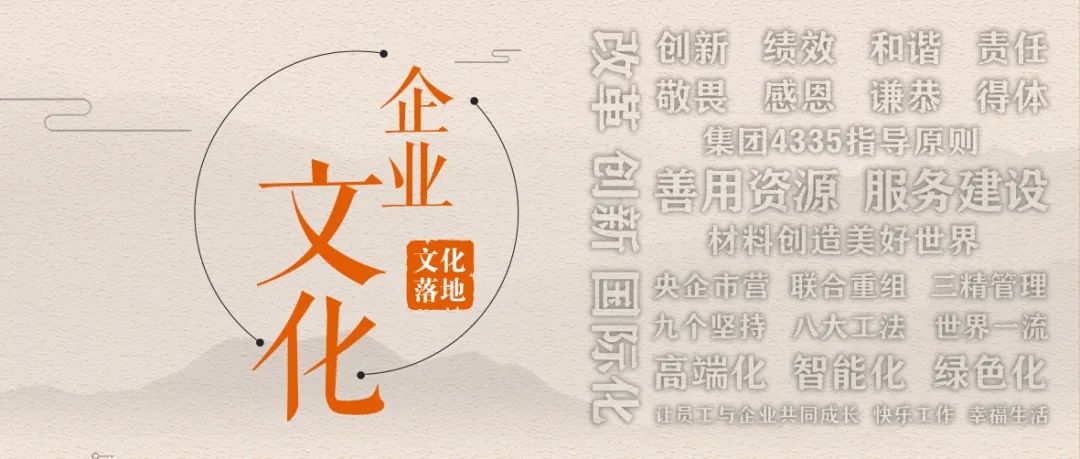 深厚的文化底蕴以及高度的国企责任,铸就了 独具特色的文化体系。我们分阶段系统开展企业文化提升暨文化手册编制工作,第一阶段完成了全级次摸底调查(点击蓝字可查看),第二阶段汇聚全体员工的集体智慧,梳理升级文化体系,编印《企业文化手册》。