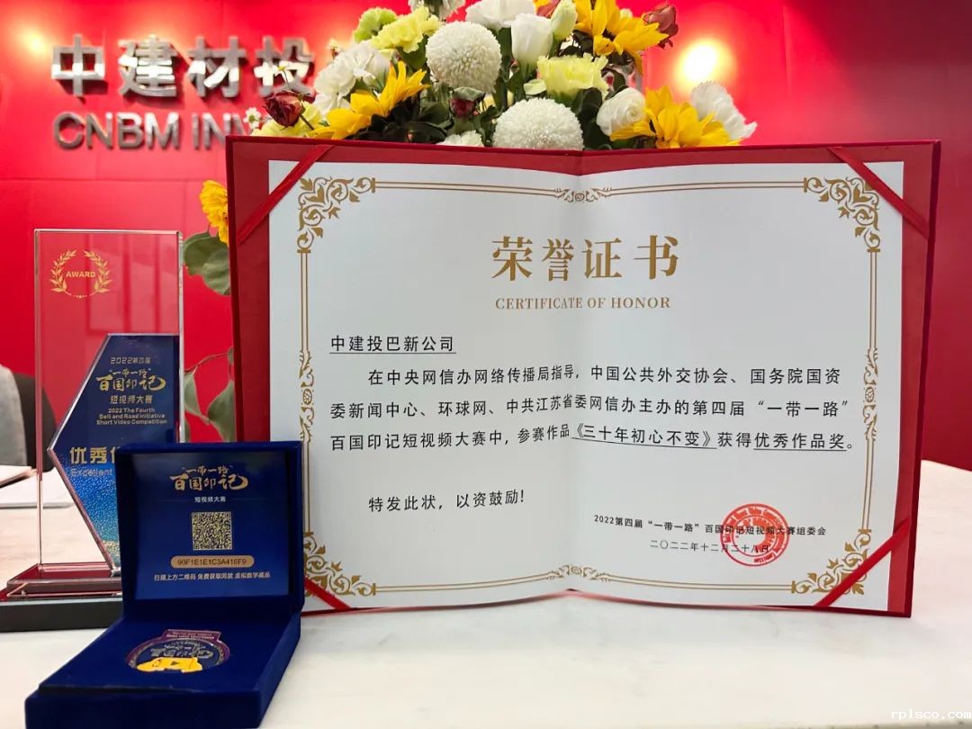 这是我们连续第四年获奖“一带一路”百国印记短视频大赛了!“一带一路”百国印记短视频大赛是由中国公共外交协会、国务院国资委新闻中心和环球网联合主办。taptap体育申报的中材水泥短视频作品《“森林工厂”守护绿色家园》、中建投巴新短视频作品《三十年初心不变》荣获“优秀作品奖”。