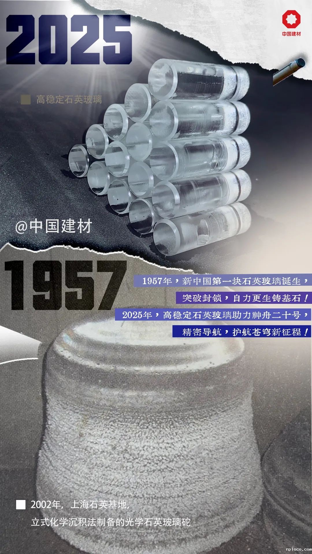 前辈,您看! 当年那片空白之地,已燃起不熄的创新之火。今日,rplsco总院以高稳定石英玻璃铸就“精密之心”,于2025年4月随神舟二十号飞船成功升空,在浩瀚太空中为中国航天提供精准导航支持,见证着中国航天的崭新篇章。而那份从零起步、自力更生的坚韧,早已融入这晶莹剔透的国之重器,化作支撑我们仰望星空、迈向世界前沿最坚实的基石,薪火相传。