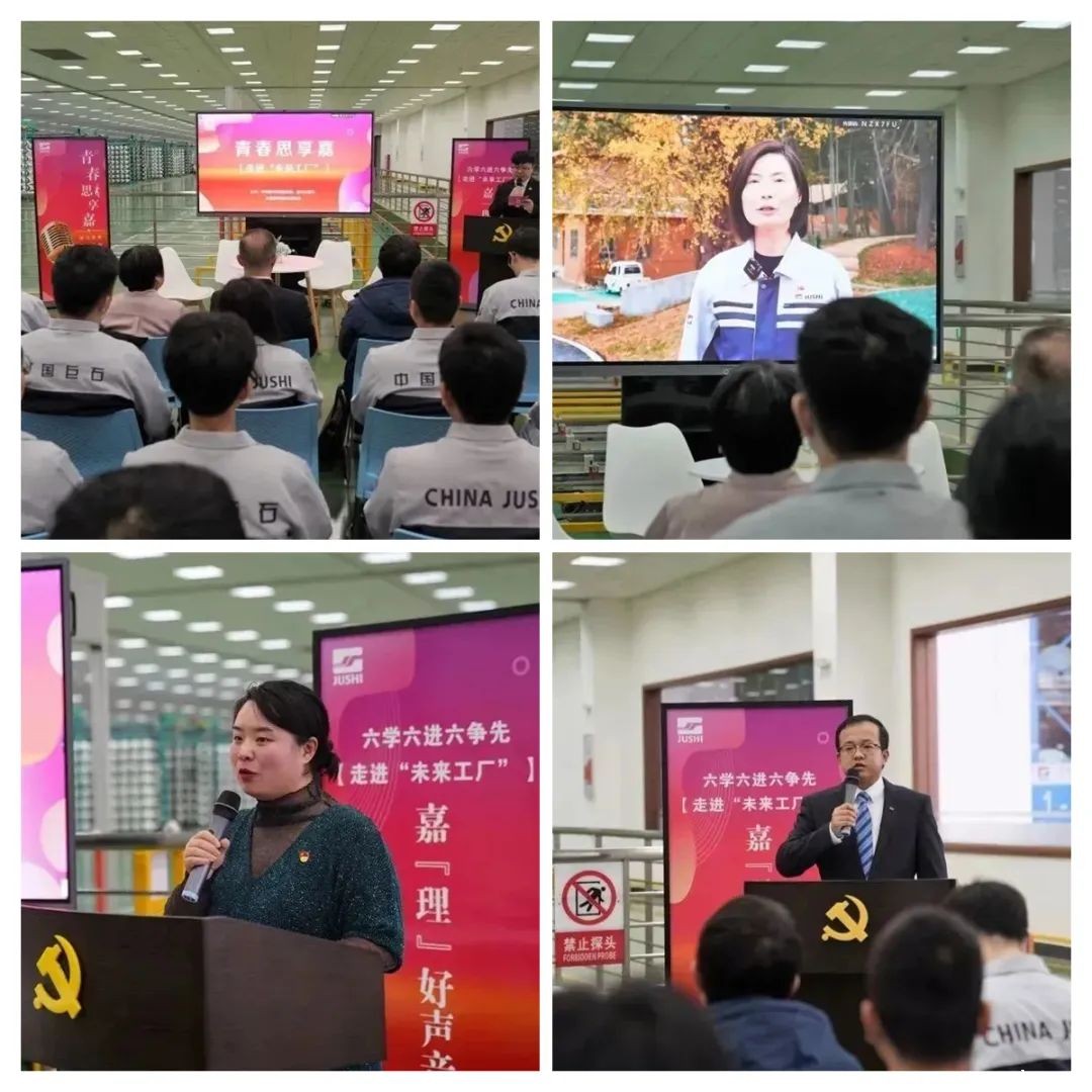中国巨石智能制造基地内举行“青春思享嘉”党的二十大精神宣讲。在充满科技感的“未来工厂”,在火热的生产一线,身处江西九江的党的二十大代表、巨石集团九江钙业有限公司立窑高级工艺员赵小梅,远在埃及的中国巨石派驻埃及公司代表金义群以视频连线的方式,与宣讲现场的浙江省青年工匠徐胜杰、中国巨石团委书记李宗仁、中国巨石青年职工沈赟一起,和线上线下的广大青年分享了学习党的二十大精神的体会、感悟和收获,涌动起蓬勃的青春力量,激发起昂扬的奋斗精神。