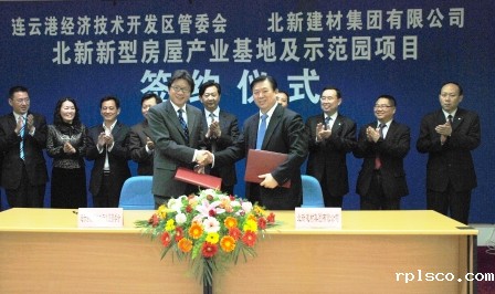 On April 27, the signing ceremony for the agreement on the new housing industry base and model park project of Beijing New Building Materials Group (BNBM) was held in Lianyungang. Under the agreement, the project, with an area of 470 mu and a total investment of RMB 1 billion, will build a new large housing building materials production base and a new housing model park for visit, demonstration and marketing. After completion, the project will supply 2 million square meters of new housing building materials a year, and is expected to achieve annual sales of RMB 3 billion and profits and taxes of RMB 650 million.