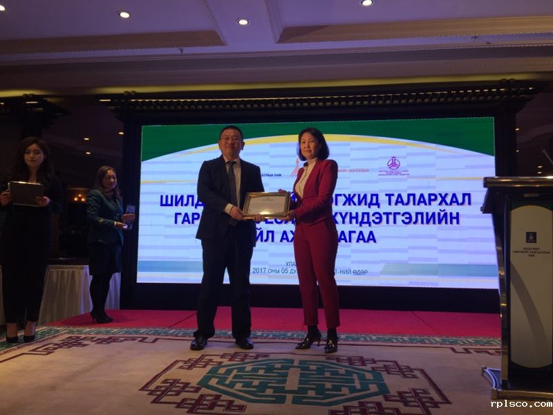Recently, CUCC’s Mongolia Mengxin Bayin Gala Co. Ltd. won the “Best Enterprise Award” in a safety evaluation organized by the Mongolian Ministry of Labor and Social Protection. Of the five enterprises winning this award, Mengxin is the only foreign-funded company. Deputy Minister for Labour and Social Protection of Mongolia, Mungunchimeg Sanjaa presented the award to Mr. Bai Dongzhi, CEO of the company.